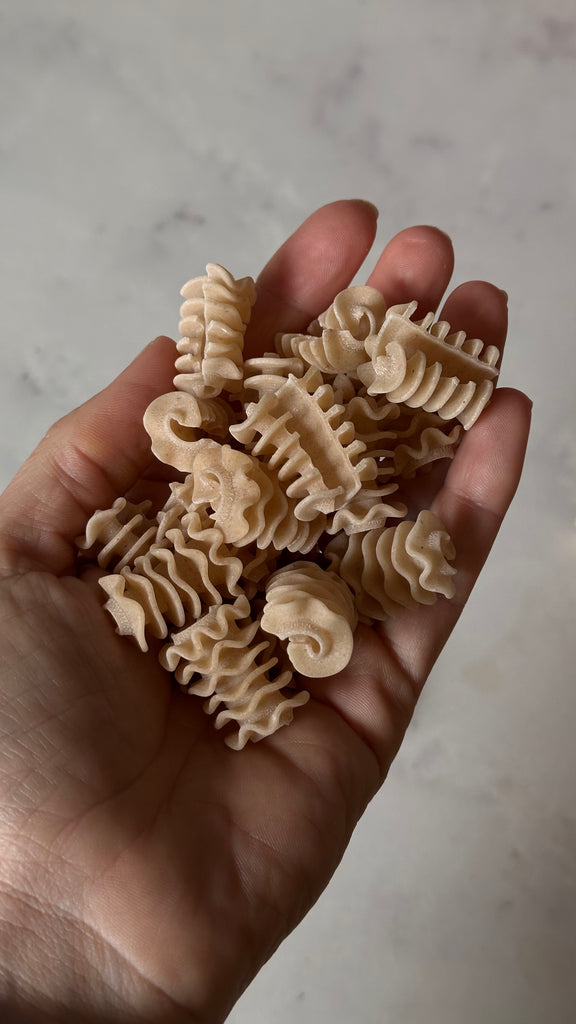 Short, chunky ruffles of pasta with a delightfully bouncy texture. Each Radiatori ridge holds onto your sauce while giving a wonderful texture to your dish! The perfect upgrade for your Pesto Pasta.